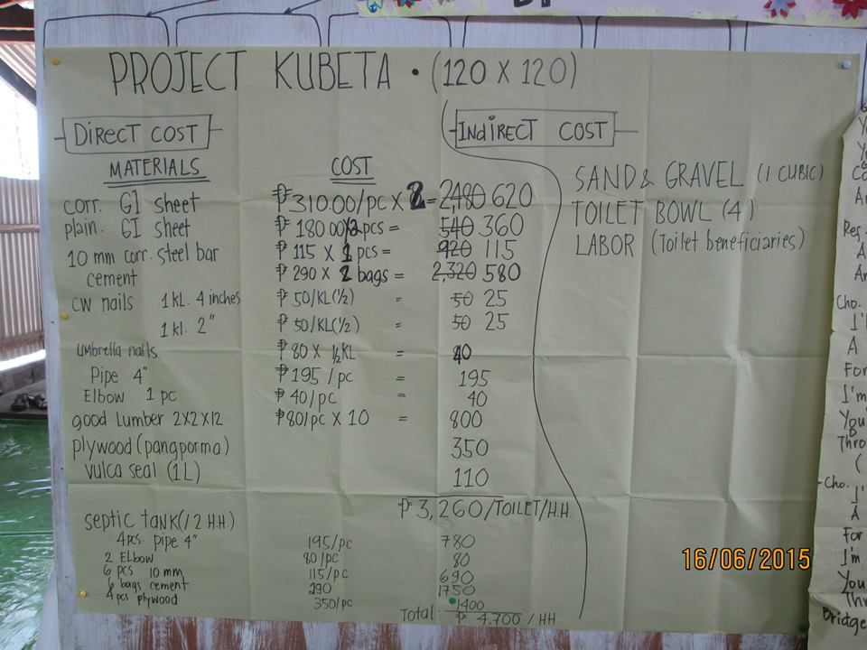 Of the 1940 households, 1272 households have no toilets. To date, the three barangays- Batang, San Miguel, and Conciledes are in need of 332 toilets. Since the rest of the ten barangays were adopted by other NGOs, MAP intends to assist barangay Batang, with 175 households with only 8 toilets.