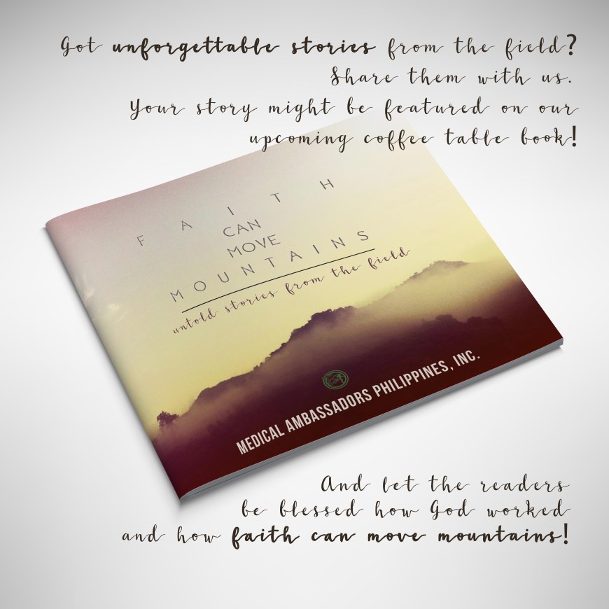 Your stories can either be in Filipino or English. You may email your stories (and photos, if you have) at info@medambassadors.org with the subject line Faith Can Move Mountains.